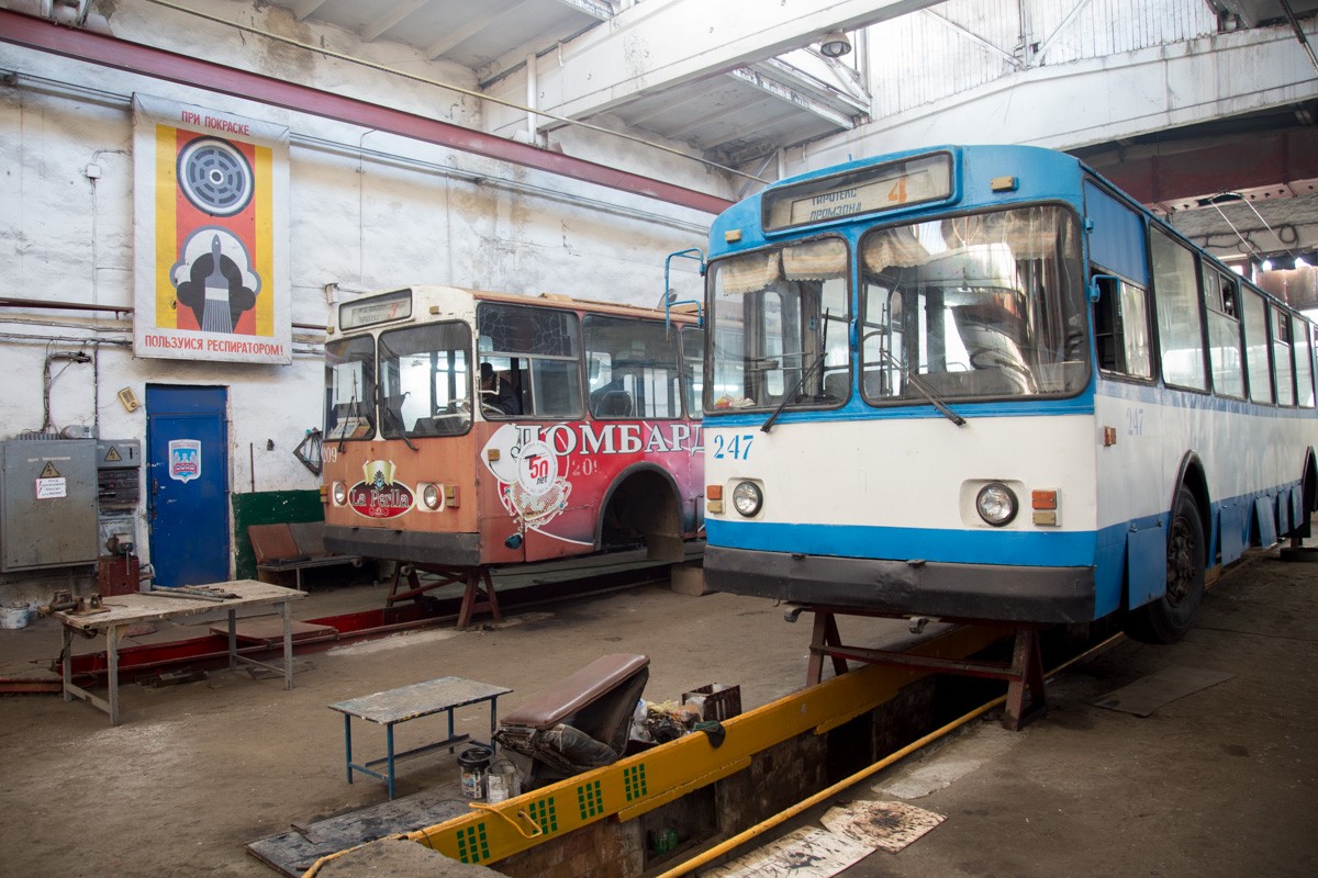 Подвижной состав. Его состояние таково, что примерно половину троллейбусов, которые ежедневно выходят на линию, нужно менять. При сроке службы 10 лет, нормативном пробеге в 600 тысяч км у многих счётчик намотал 1,2-1,7 млн км, а срок службы перевалил за 25-30 лет.