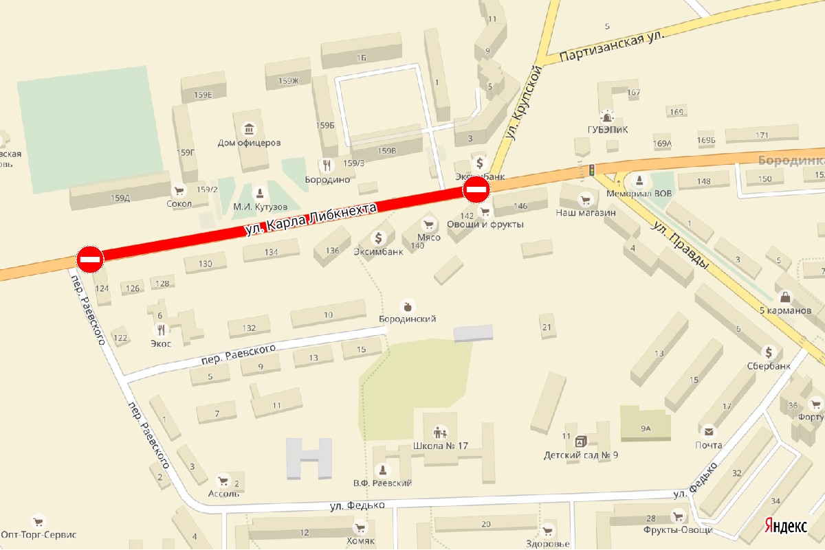 По этой же причине по нечётной стороне ул. К. Либкнехта - от ул. Крупской до пер. Раевского - будет перекрыто движение машин с 1 октября по 6 октября, по чётной стороне – с 7 октября по 14 октября.
