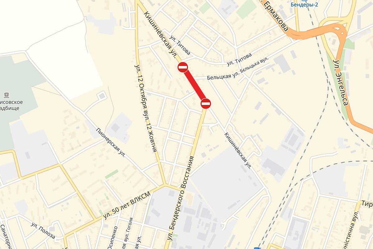 Проезд для транспорта закрыт на участке от улицы Бендерского Восстания до Титова
