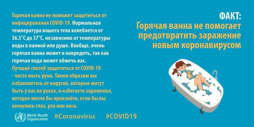 Ультрафиолетовыми лампами нельзя дезинфицировать кожу, а горячая ванна не спасает от коронавируса