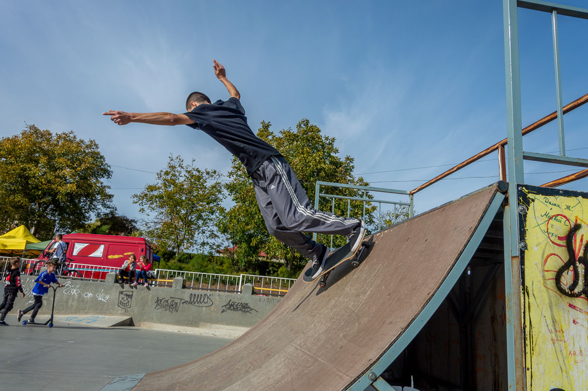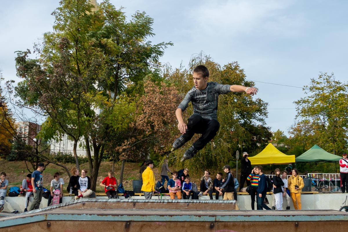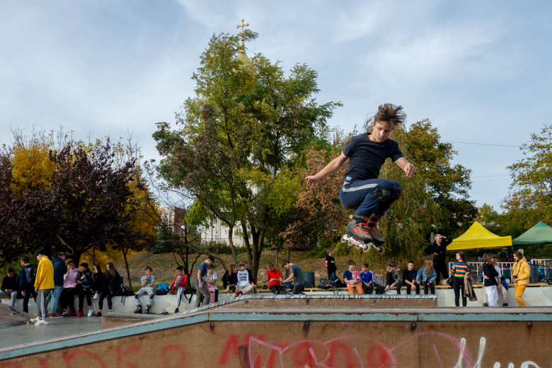 В рамках фестиваля прошли соревнования между скейтерами, роллерами и самокатерами, в которых приняли участие порядка тридцати молодых людей.