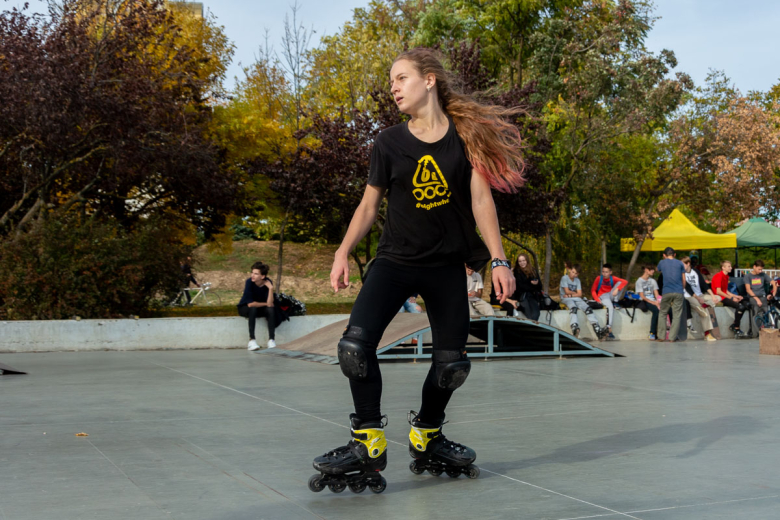 Помимо парней, попробовать свои силы и посоревноваться пришли и девушки, а точнее одна девушка – 15-летняя Алиса из Тирасполя. Она выступала на роликах, катается на них с 5 лет. А совсем недавно девушка попала в Кишиневскую команду Eight wheels, в которой 71 человек - любителей роллер-спорта.
