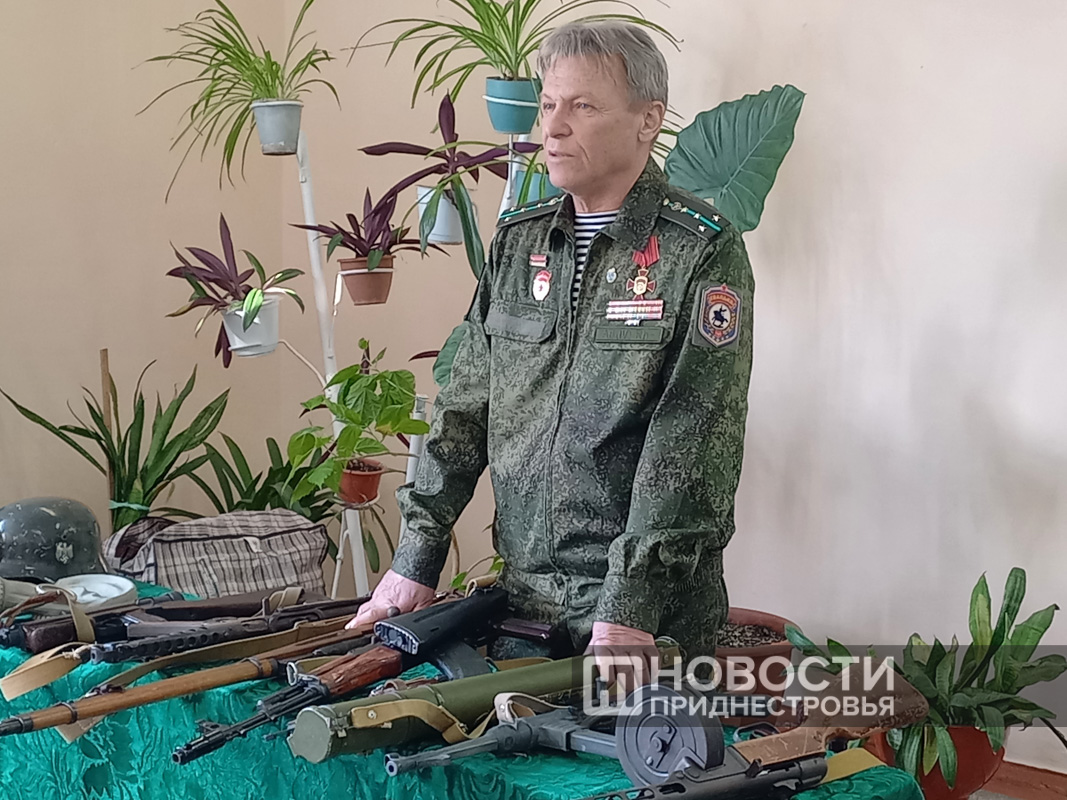 Выставку оружия привез для дубоссарских школьников ветеран Республиканской гвардии тираспольчанин Александр Синика. В 1992 году гвардеец защищал рубежи республики в Дубоссарском районе в составе Тираспольского батальона.