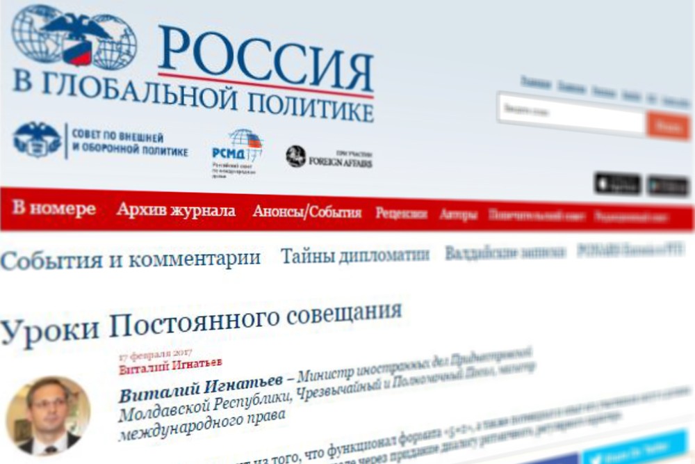 Журнал «Россия в глобальной политике» опубликовал статью главы приднестровского внешнеполитического ведомства Виталия Игнатьева. По мнению дипломата, Приднестровье исходит из того, что функционал формата «5+2», а также потенциал и опыт его участников могут и должны быть реализованы более эффективно, в том числе через придание диалогу ритмичного, регулярного характера.