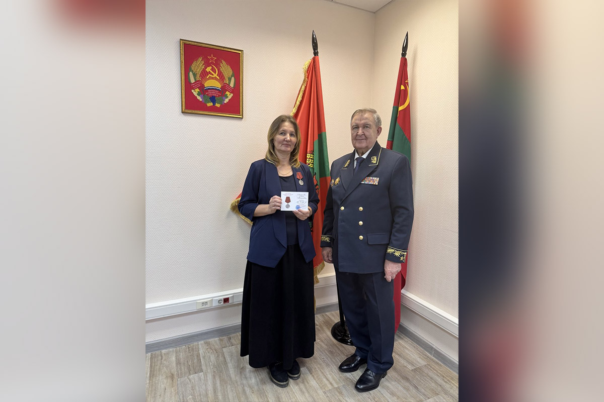 Тирасполь, 1 декабря. /Новости Приднестровья/. Юбилейную медаль «80 лет Победы в Великой Отечественной войне 1941-1945 гг.» уроженке села Терновка Слободзейского района Олесе Поляковой вручил глава официального представительства Приднестровья в Российской Федерации Леонид Манаков.