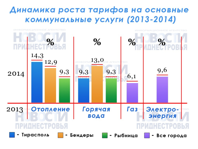 Стоит отметить, что с наступлением 2014 года Правительством Приднестровья было принято решение не повышать тарифы на коммунальные услуги в первом квартале. Таким образом, поэтапное возрастание цен на коммунальные платежи граждане почувствуют лишь с апреля.