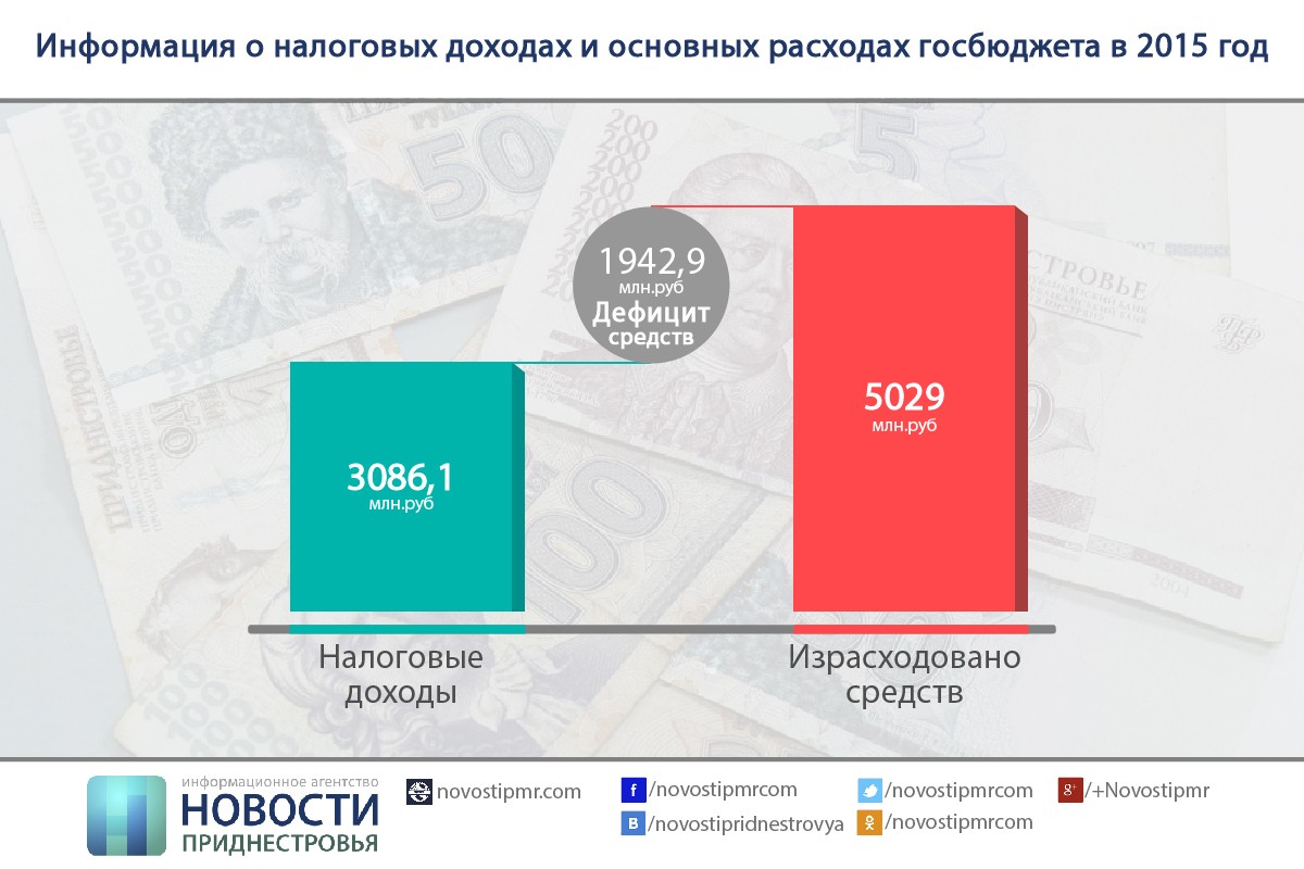 В 2015 году налоговые доходы госбюджета (в том числе по республиканскому и местному бюджету, а также ЕГФСС) сложились на уровне 3 086,1 млн руб. Расходы на заработную плату с начислениями, пенсии составили 4 141,0 млн руб. Таким образом, за 2015 год выплачено средств на оплату труда и пенсий на 1 054,9 млн руб. больше, чем поступило налоговых доходов по республике.