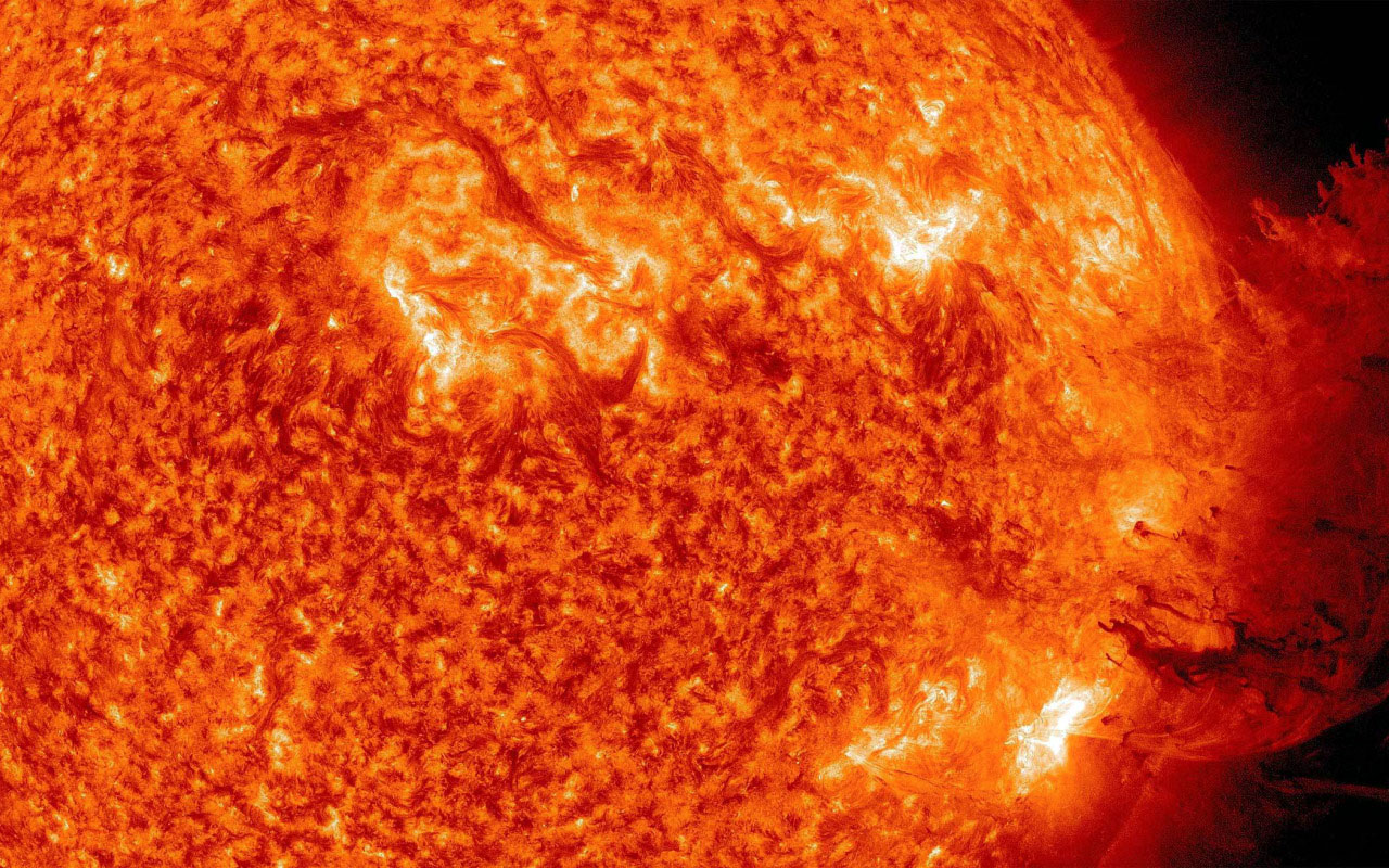 «По внешним проявлениям Солнце ведёт себя по-разному. Часто на его поверхности видны группы так называемых солнечных тёмных пятен, это тоже плазма, температура которой всего лишь на 500°С ниже, чем окружающей пятна плазмы. Если температура Солнца 6 тысяч градусов по Цельсию, то здесь происходит выход магнитно-силовых трубок, которые формируют мощные поля. Так и получаются эти самые солнечные вспышки», – объясняет Александр Выхристенко.