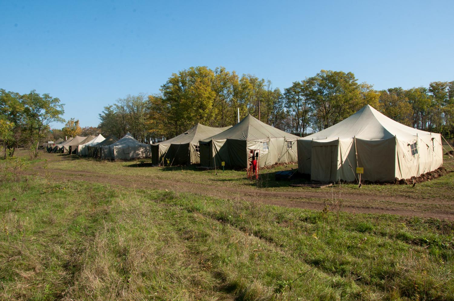 Военнослужащие живут в полевом лагере, а занятия у них проходят в условиях, максимально приближенных к боевым