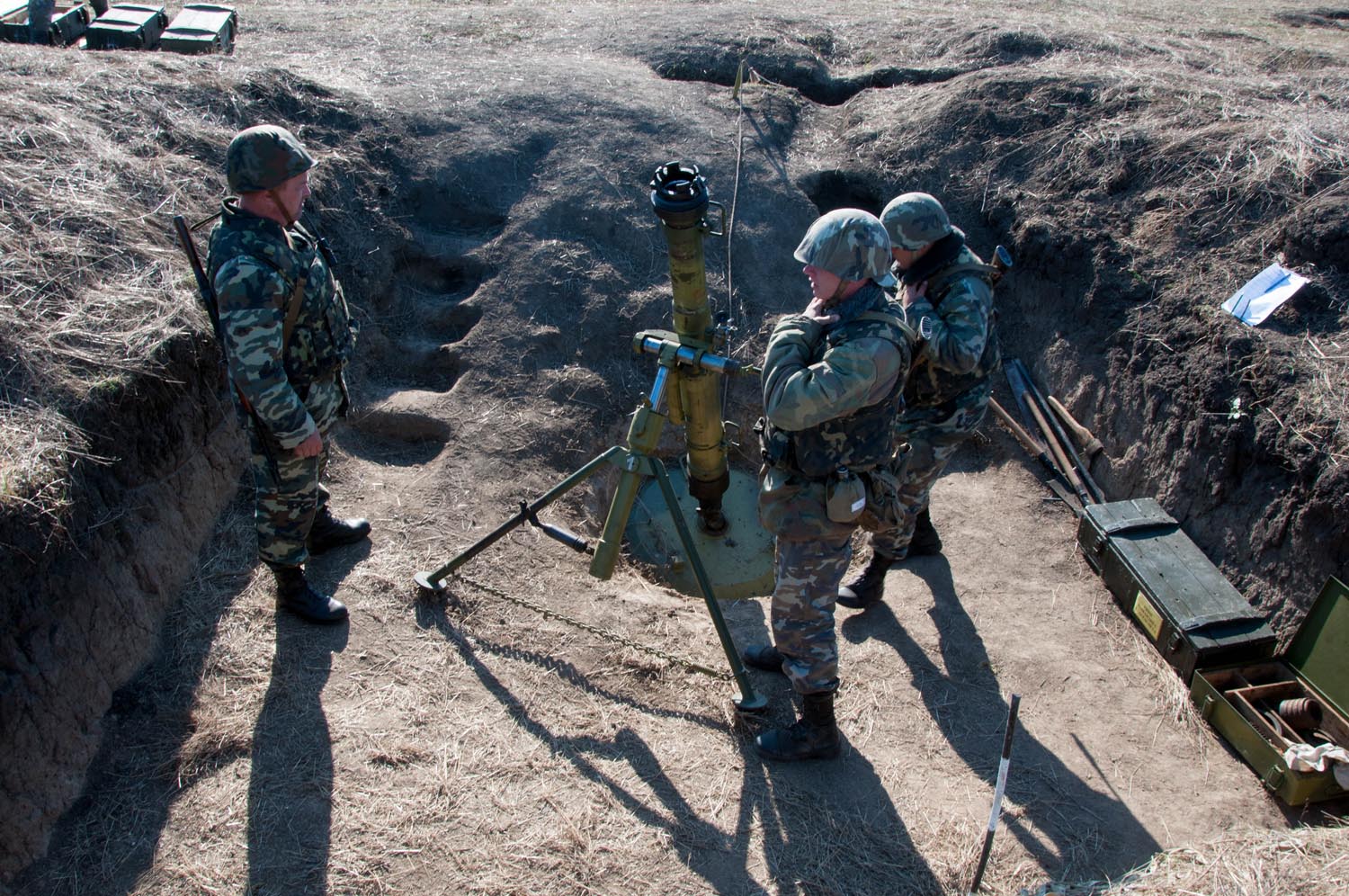 В завершение занятия у артиллеристов прошло состязание на лучшего специалиста. Военнослужащие на время выполнили нормативы по приведению миномета из походного положения в боевое, наведению цели и отметке точки наводки. Лучшие артиллеристы были поощрены благодарностями.