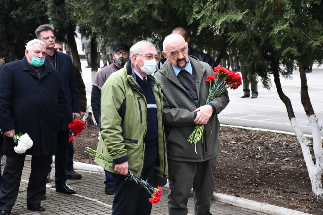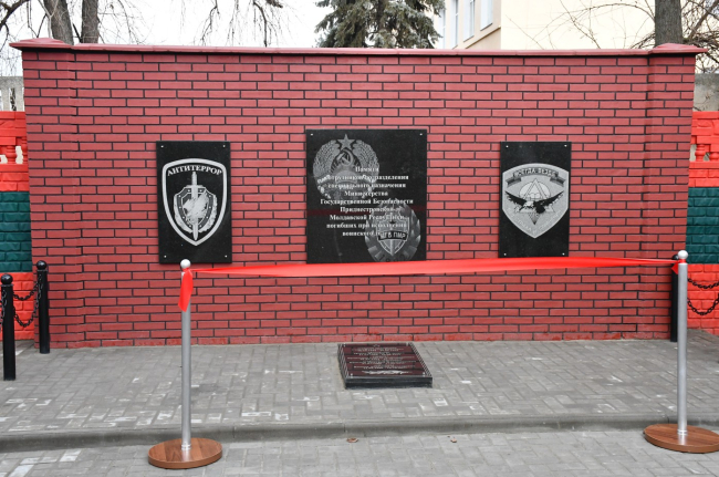Он был воздвигнут по инициативе их действующих коллег как дань уважения подвигу сослуживцев. На мраморной плите выбиты имена и фамилии пяти героев. Трое из них погибли в боях по защите Приднестровской Молдавской Республики в 1992-м году, двое – во время службы в мирное время, сообщает пресс-служба Министерства госбезопасности ПМР.