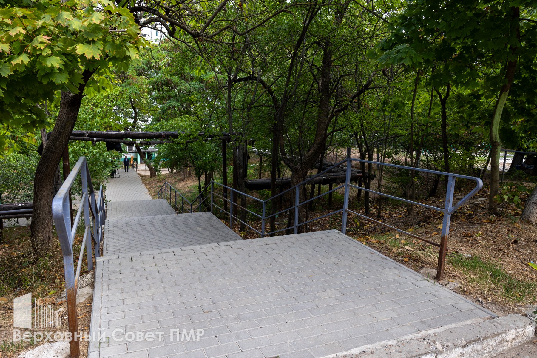 Один из масштабных проектов совместной пятилетней работы с депутатами горсовета по округу «Солнечный» – это обустройство тротуарной плиткой лестничного марша внутри дворов по улице Ленинградской. Лестница перед домом № 14 ведёт к филиалу бендерской поликлиники, к магазину и домам по улице 40 лет Победы. Теперь подъём стал удобным и, самое главное, безопасным для людей, отмечают депутаты.