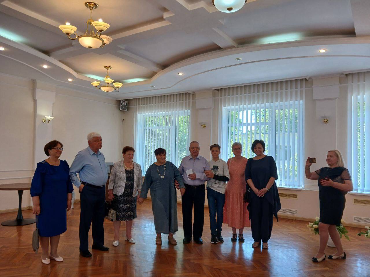 На празднование бриллиантовой свадьбы приехали дочери, внук, друзья и коллеги.