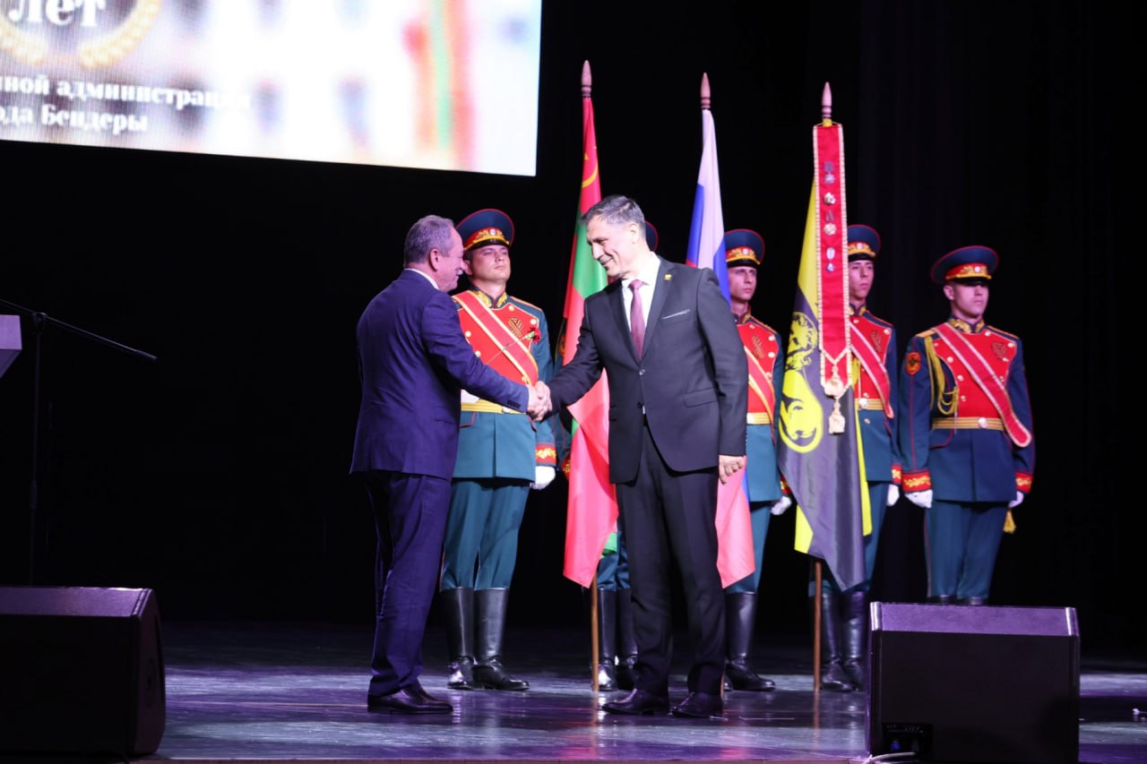 От имени Бендерского городского Совета народных депутатов работников государственной администрации города Бендеры поздравил Юрий Кара.