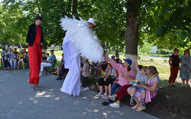 Программу подготовили артисты театра «Изумрудный город». Развлечения были на любой вкус: можно было посмотреть выступления юных танцоров, певцов, акробатов, поучаствовать в эстафетах, поиграть в настольные игры и полакомиться мороженым. Угощение привезли юным жителям села депутаты Верховного и местного советов, сотрудники аппарата партии «Обновление».