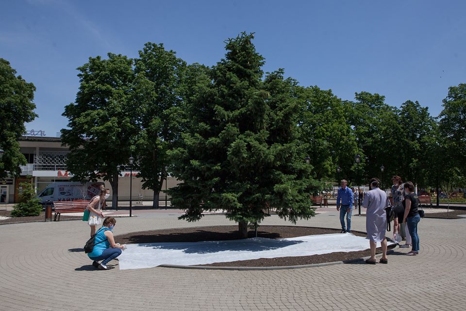 На субботник пришли целыми семьями. Каждый украшал сквер по-своему: взрослые сажали траву, дети рисовали мелками на асфальте и тротуарной плитке. Потом все ребята получили мороженое за вклад в общее дело.