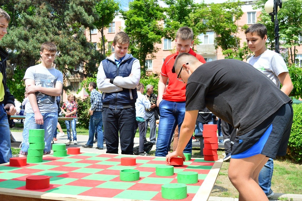 … а кто-то предпочитает шашки «по-приднестровски». От обычных шашек эта игра отличается огромным полем и масштабными фигурами – для того чтобы ими двигать, необходимо совершать гимнастические движения. В этом как раз все и дело – работает не только мозг, но и мышцы. Красно-зеленые цвета вместо традиционных черно-белых - еще одно отличие этой игры. Отсюда и название – шашки «по-приднестровски» (красный и зеленый - это цвета приднестровского флага).