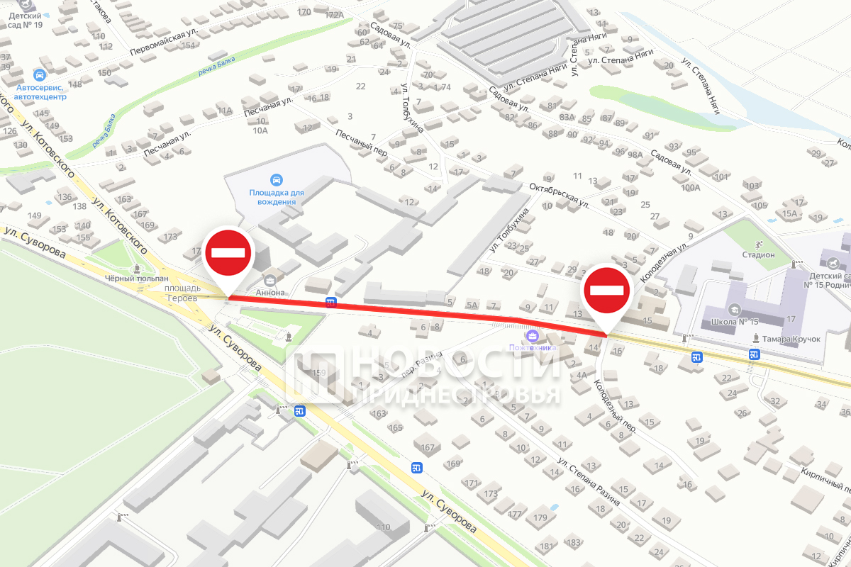 Бендеры, 16 июня. /Новости Приднестровья/. В Бендерах с 17 июня до 17 июля будет перекрыто движение автотранспорта по улице Т. Кручок – на участке от ул. Котовского до ул. Колодезной. Это связано с проведением капитального ремонта автомобильной дороги общего пользования, сообщили в бендерской госадминистрации.