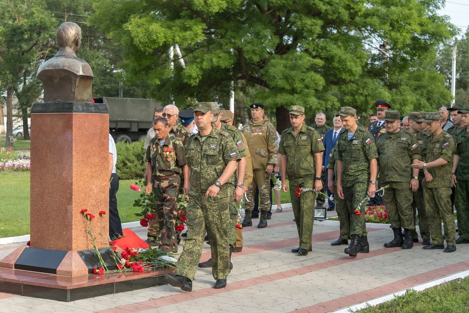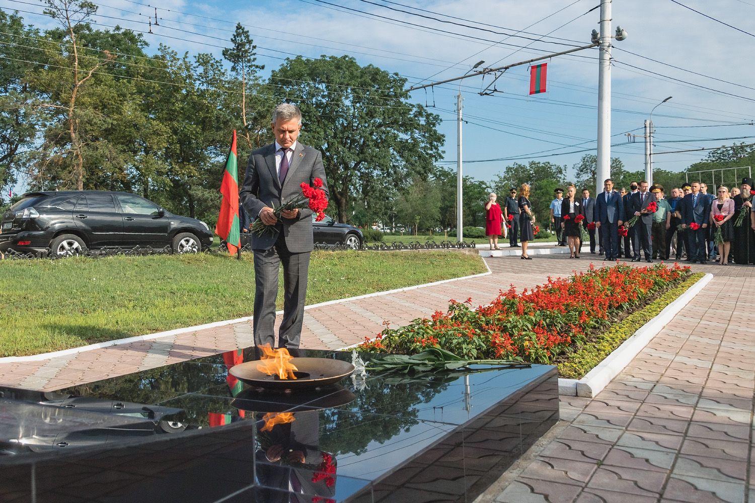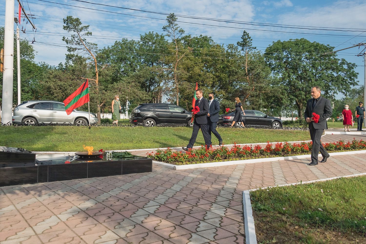 В нынешнем году в программу траурных мероприятий по объективным причинам не включили ставшее традиционным массовое шествие горожан и гостей Бендер с портретами погибших защитников. Представители руководства республики и города собрались на Мемориале Памяти и Скорби. Здесь была объявлена минута молчания и состоялась церемония возложения цветов. Как символ неувядающей памяти их опустили к вечному огню, памятнику генерал-лейтенанту Александру Лебедю и к мемориальной стене, каменными крыльями прикрывающей город от беды.