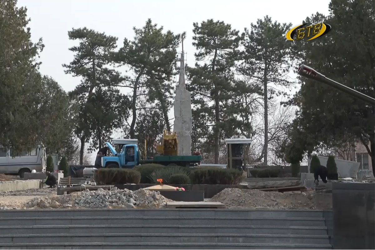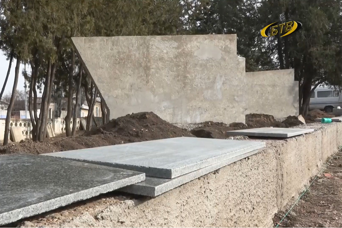 «С наступлением тёплого периода года, благоприятного для строительства и отделки, с момента прибытия материала активно продолжились работы по реставрации Мемориала воинской Славы. На сегодняшний день мы видим, как раскроен материал для облицовки подпорных стен, основных элементов частей мемориала. Всё готовится к тому, чтобы к 9 мая этот объект был уже в полном объёме выполнен», – отметил помощник главного архитектора города Бендеры Игорь Швыдкий.