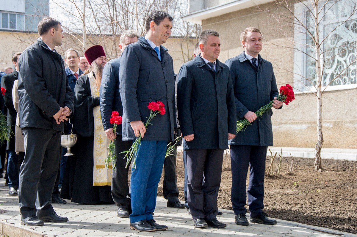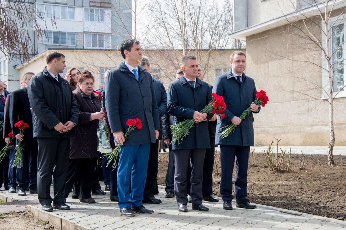 Право открытия мемориальной доски представилось президенту Вадиму Красносельскому и Михаилу Калько – сыну заслуженного деятеля ПМР.