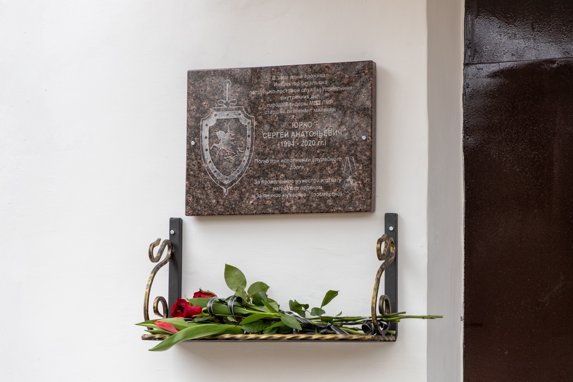 Памятную доску в день рождения Сергея Юрко открыли его мать Елена Юрко и начальник УВД Бендер Дмитрий Каргаполов. Он отметил, что это не просто гранитная плита, а напоминание всем о том, что профессия сотрудника милиции почётна, ответственна, но сложна и зачастую связана с риском для жизни.