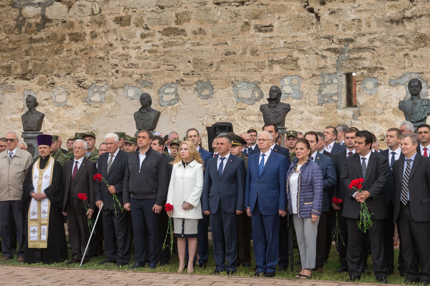 В церемонии приняли участие президент Приднестровья Вадим Красносельский, первый глава государства Игорь Смирнов, представители Правительства и Верховного Совета, военнослужащие Оперативной группы российских войск в ПМР, члены Совещательного собрания первых приднестровских депутатов, а также посол России в РМ Фарит Мухаметшин, полпреды Южной Осетии и Абхазии в Приднестровье Виталий Янковский и Александр Ватаман, второй секретарь посольства Турции в РМ Хасан Ярсен.