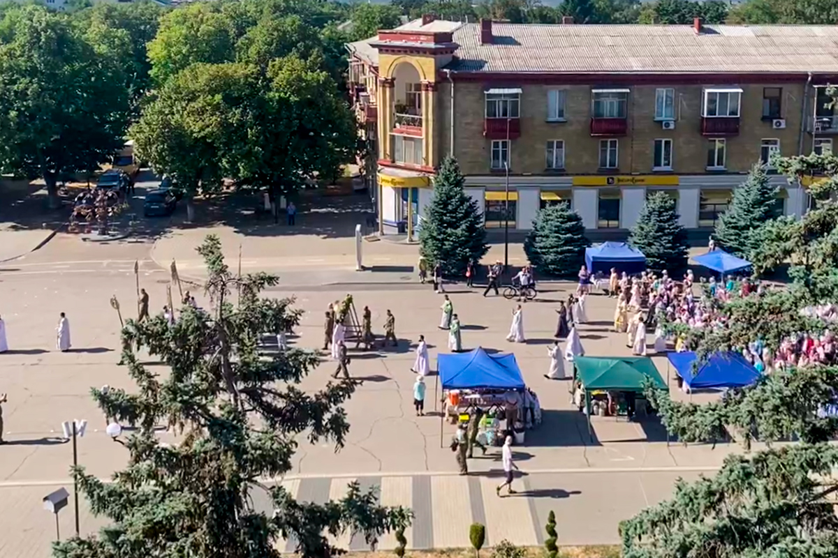После этого верующие отправились крестным ходом по центру города. Они прошли от Преображенского собора к площади Освобождения через улицы Суворова и Лазо. Затем священнослужители освятили дары нового урожая, которые прихожане принесли к храму.