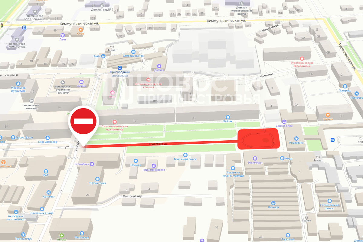 Бендеры, 28 марта. /Новости Приднестровья/. В Бендерах с 28 марта по 10 апреля перекрыто движение транспорта по улице Советской – на участке от ул. Гагарина до ул. Тираспольской. На данном участке продолжает работы водоканал, сообщает телеграм-канал «Бендеры Инфо».