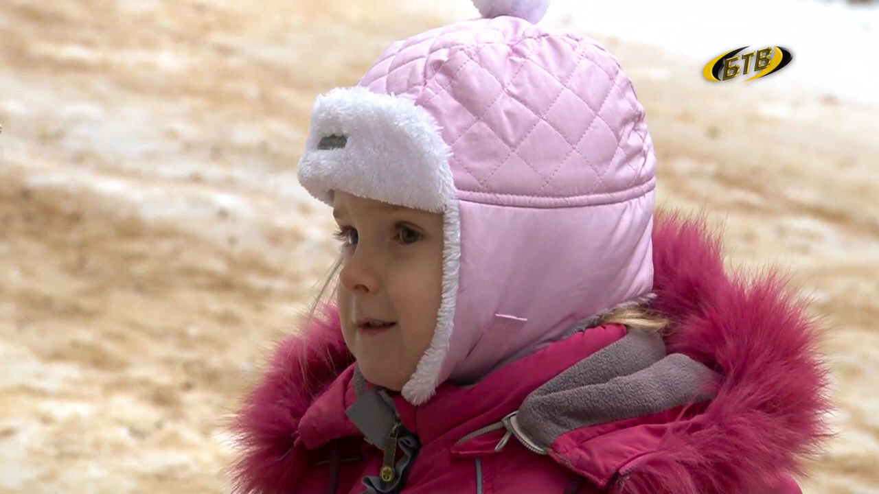 Одной из первых в этом году поздравили малышку Лилию, вместе с мамой она возвращалась из поликлиники. После долгого лечения заметны улучшения. Девочку встречают Дед Мороз со Снегурочкой.