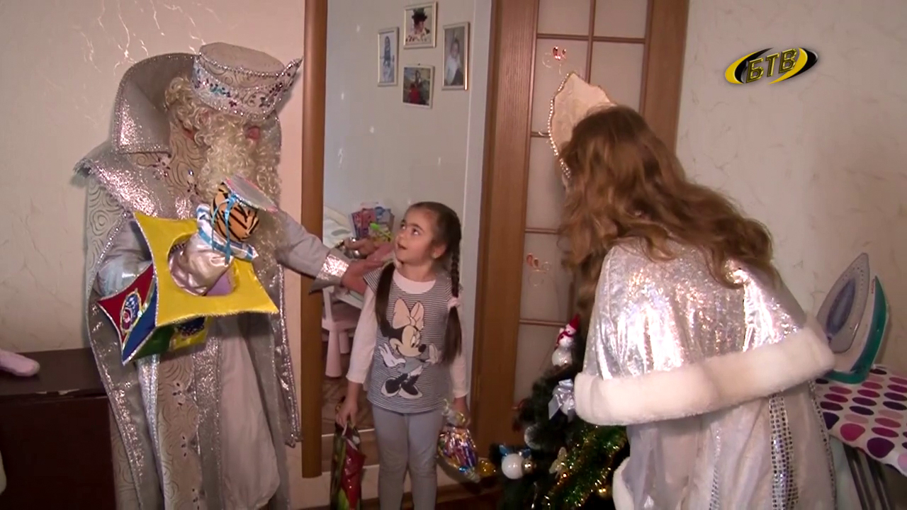 У Деда Мороза и Снегурочки задача обойти с поздравлениями больше десятка квартир. Самое главное пожелание детям – как можно быстрее пойти на поправку.