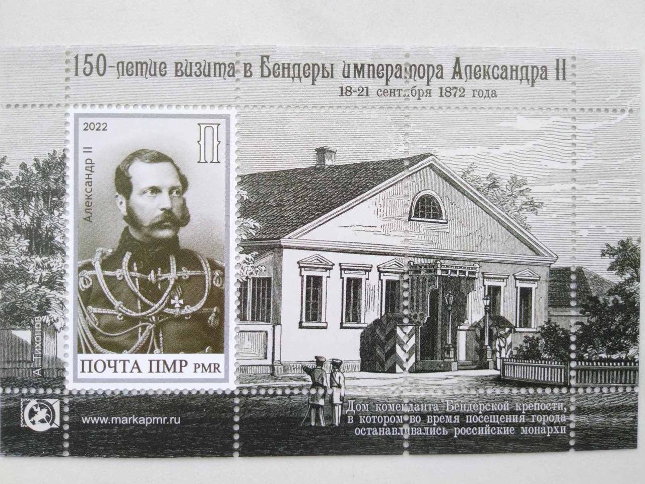 Бендеры, 17 сентября. /Новости Приднестровья/. Сегодня в Бендерском историко-краеведческом музее состоялась презентация и спецгашение марок «150-летие визита в Бендеры императора Александра II», выпущенных издательством «Марка Приднестровья». Их тираж – 700 блоков, сообщает телеграм-канал «Бендеры Инфо».