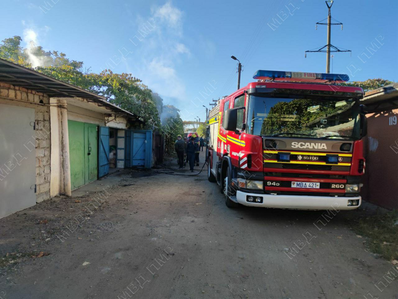 К месту происшествия прибыл пожарный расчёт. Как сообщила пресс-служба МВД ПМР, работу огнеборцев осложняла захламлённость помещения и высокая температура внутри. В гараже лежал кусок железнодорожного рельса. Металл накалился докрасна.