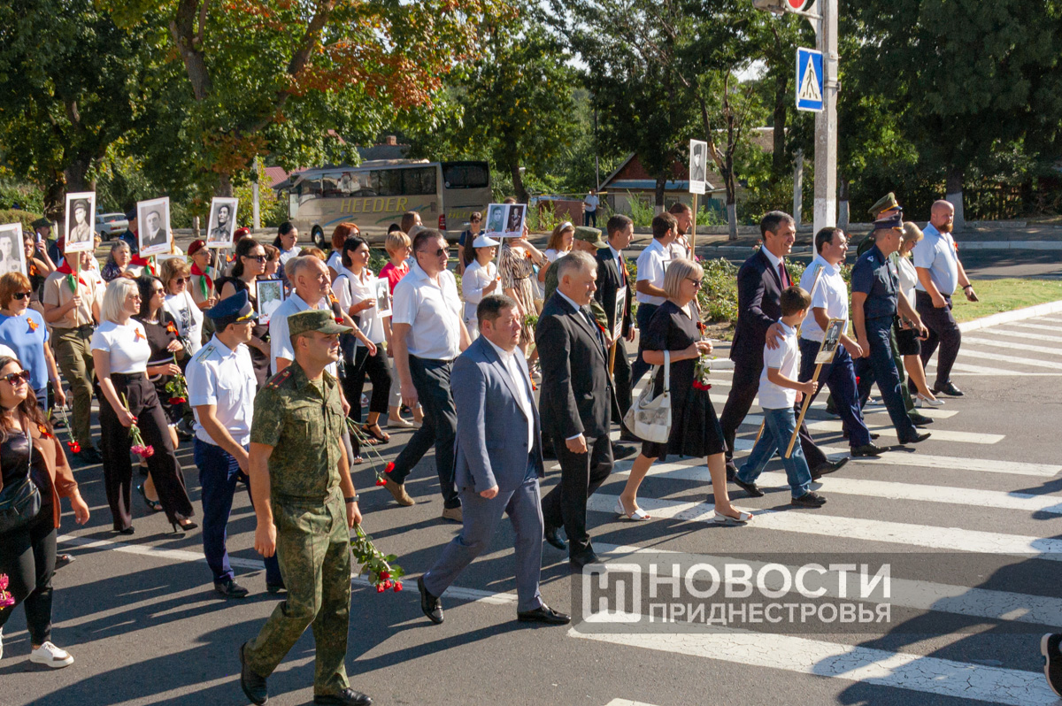 Отдавая воинские почести павшим при освобождении города, мимо Мемориала Славы прошли торжественным маршем суворовцы, подразделения Миротворческих сил, МВД ПМР и Черноморского казачьего войска.