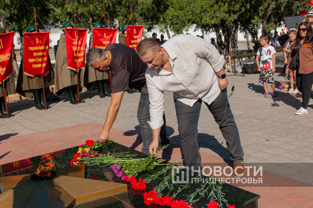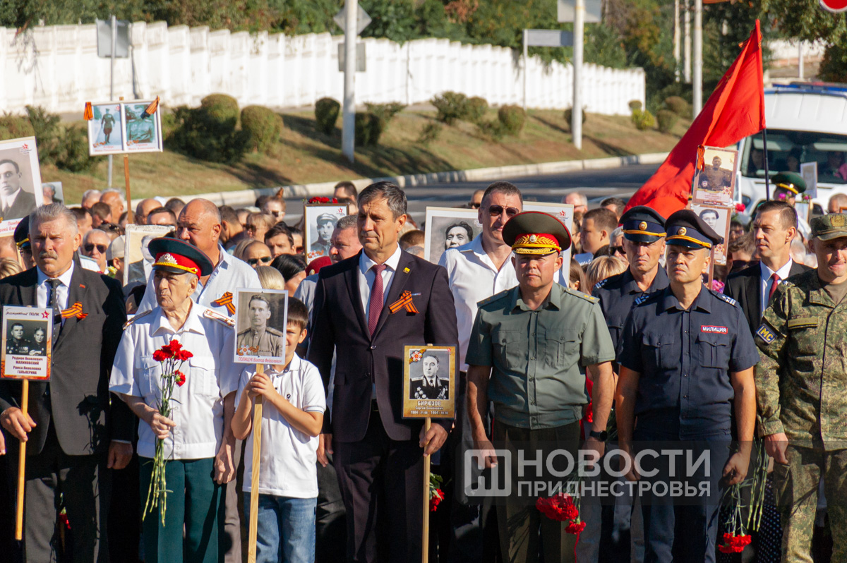 Тему переписывания истории затронул в своем выступлении и председатель городского Совета народных депутатов Юрий Кара. Он отметил, что более 3 тысяч солдат и офицеров погибли при освобождении города, четверть всех потерь в Ясско-Кишиневской операции приходится на освобождение Бендер.