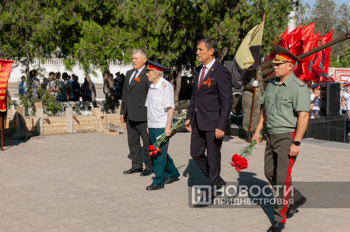 Завершилась церемония минутой молчания и возложением цветов. Первыми цветы возложили глава города Роман Иванченко, председатель горсовета Юрий Кара, председатель ветеранской организации Юрий Ильяшенко и министр обороны ПМР Олег Обручков, депутаты Верховного и городского советов, сотрудники силовых структур и горожане.
