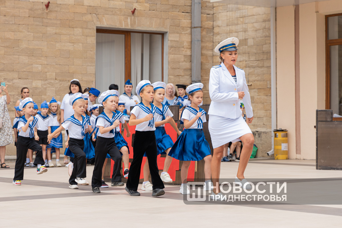 Ярко и задорно свой детский сад представили и воспитанники дошкольного учреждения № 40. Команда предстала в морском стиле. Предварительно воспитатели провели с детьми ознакомительную работу: рассказали о Великой Отечественной войне, а затем отправились на экскурсию по военно-историческим местам Бендер. Говорят, что патриотическому направлению в саду уделяется большое внимание.