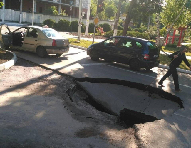 В Бендерах провалился асфальт