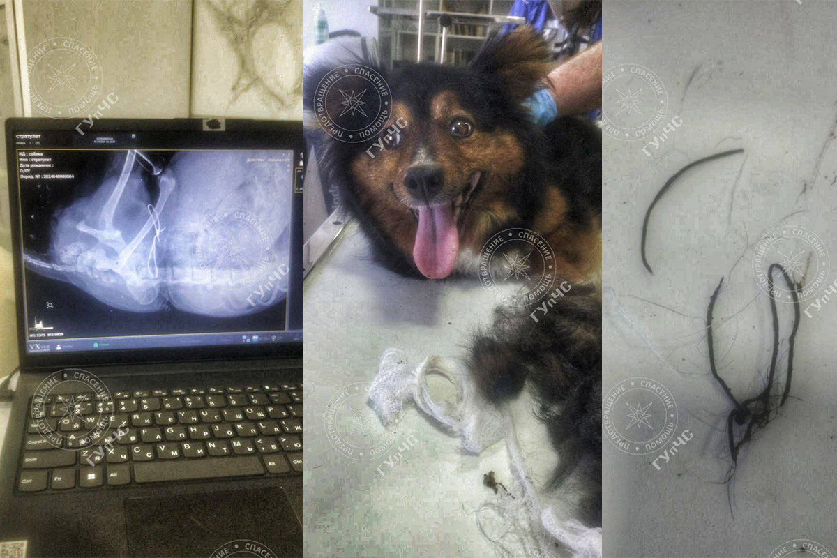 Спасатели вместе с неравнодушной гражданкой не только доставили собаку в ветеринарную клинику, но и помогли сделать операцию. Держали животное, пока врач извлекал проволоку.