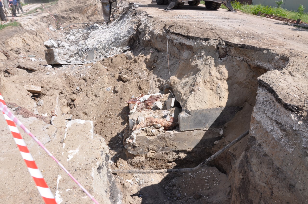 «Сейчас мы меняем здесь участок длиной около 40 метров, это просто устранение аварийной ситуации. При вскрытии обнаружили ещё 2 порыва. Трещину в железобетонной трубе, будем её устранять. Кроме того, тут ещё есть бетонный ДОТ времён Великой Отечественной войны, который нужно убрать, чтобы проложить новую трубу», – рассказал директор городского филиала ГУП "Водоснабжение и водоотведение" Олег Кабанов.