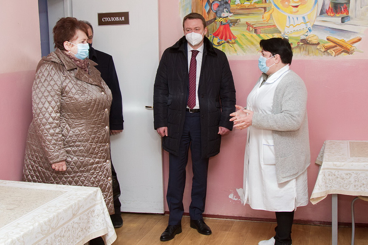 Мария Иванова показала главе Правительства спальни, актовый зал и столовую, а также комнаты для занятий.