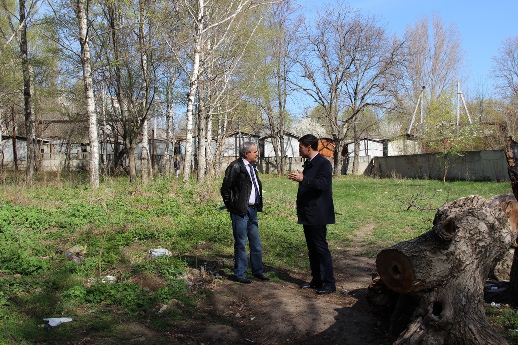 Осмотр места, где может разместиться парк (между территорией Железнодорожной больницы и жилым массивом по улице Полоза, в районе дома № 2), осмотрели глава госадминистрации Бендер Роман Иванченко и главный архитектор города Яков Деченко.