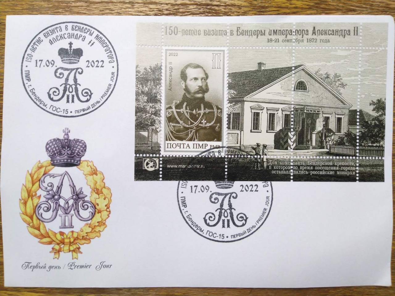 Бендеры, 17 сентября. /Новости Приднестровья/. ГУП «Издательство “Марка Приднестровья”» порадовала филателистов очередным почтовым выпуском. Посвящён он 150-летию приезда императора Александра II в Бендеры.