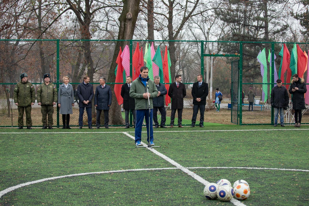Обращаясь к участникам церемонии, Президент ПМР Вадим Красносельский отметил, что открытие мини-футбольного поля на месте еще недавно заброшенной площадки стало возможным благодаря усилиям руководства города и неравнодушным людям, живущим спортом. Он выразил надежду на то, что площадка станет спортивным центром парка им. М. Горького. В скором времени вокруг нее появятся и другие сооружения: детская и волейбольная площадки, теннисные столы.