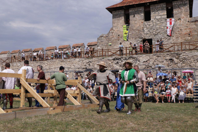 Для того, чтобы обезопасить зрителей, ристалище оградили дополнительными деревянными конструкциями. Посмотреть на рыцарские сражения можно и на трибунах вокруг изгороди, а также со стены крепости.