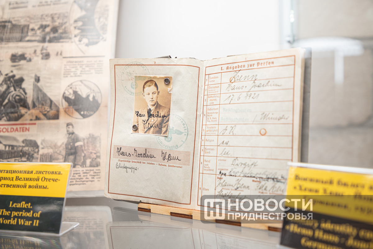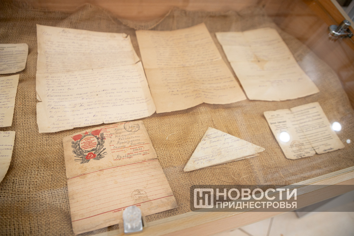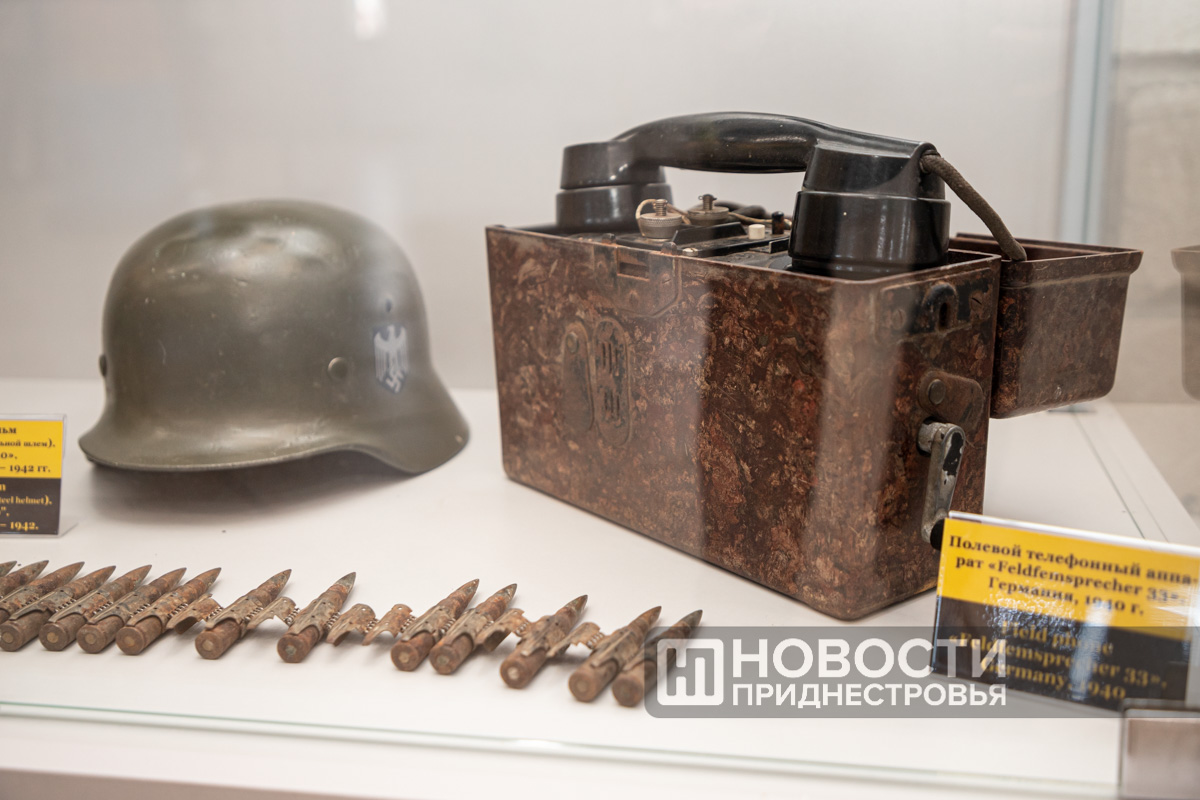 Остальные витрины посвящены участникам Великой Отечественной войны. Одна демонстрирует вещи и документы солдат и офицеров Красной армии, вторая – немецких и румынских войск. Большинство экспонатов нашли в окрестностях Бендер, Слободзейском и Григориопольском районах. Многие экспонаты относятся к периоду освобождения края, как, например, табличка в честь рядового Истратенко.
