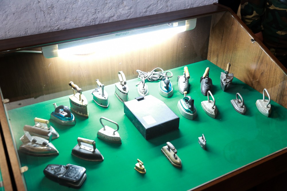 Утюги тоже представлены в большом многообразии: начиная со старинных, нагревавшихся на печи или от угля, и заканчивая с первых электрических, они наглядно показывают, как эволюционировала бытовая техника за последнее столетие-полтора.