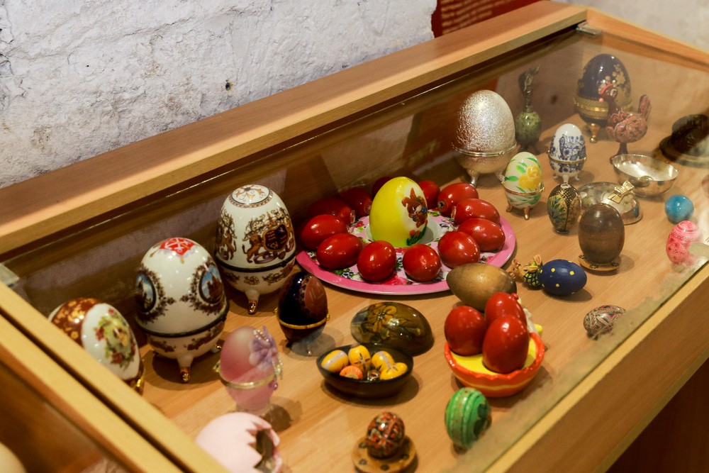 Пасхальных и сувенирных яиц здесь больше всего – порядка 300, керамические, каменные, стеклянные, с образами святых и расписанные гжелью, они – как разноцветная палитра различных временных эпох и исторических периодов.