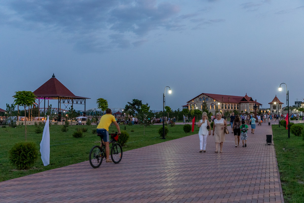 Полковой бал, начавшийся у памятника Александру Невскому, ознаменовал начало концертной программы. На главной сцене парка выступили лучшие вокальные и танцевальные коллективы города.