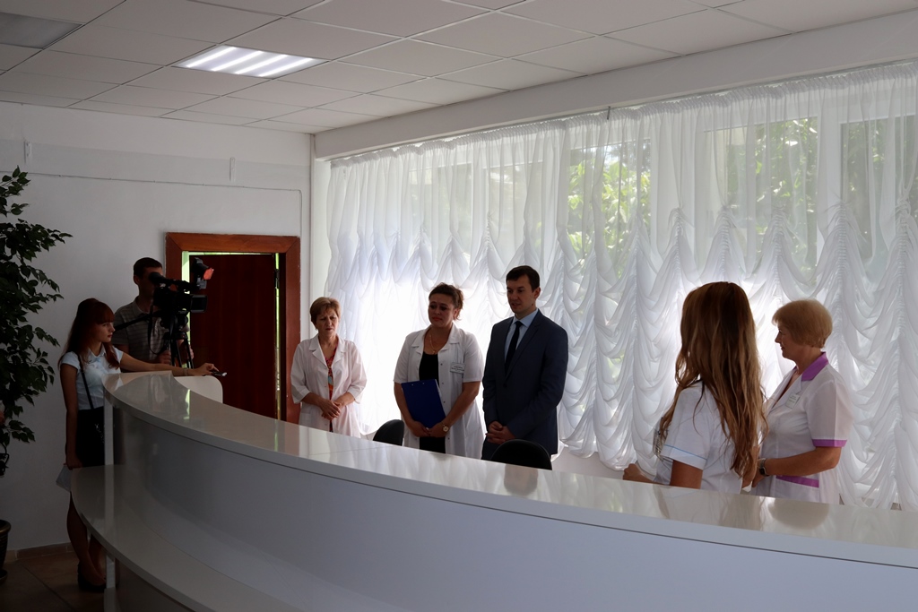 22 Авг., 2019, 20:32Бендеры, 22 августа. /Новости Приднестровья/. В первой поликлинике Бендерского центра амбулаторно-поликлинической помощи обновили холл. Здесь полностью отремонтировали потолок, покрасили стены. Пациентов теперь встречает «открытая регистратура», в которой нет окон-перегородок. Вся обстановка располагает к прямому и доброму общению. Глава ведомства оценил изменения лично, сообщает пресс-служба Минздрава.